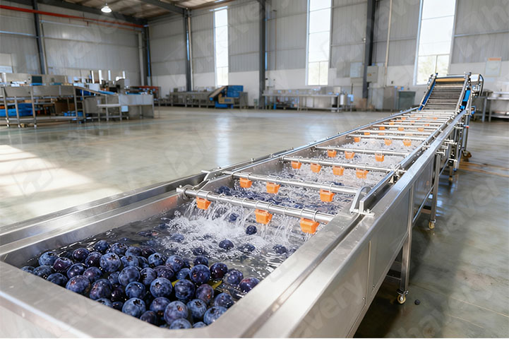 The blueberry washing drying and grading machine integrated 3 in 1 with 95% grading accuracy. Gentle on blueberries, removes pesticides/dust, cuts loss.