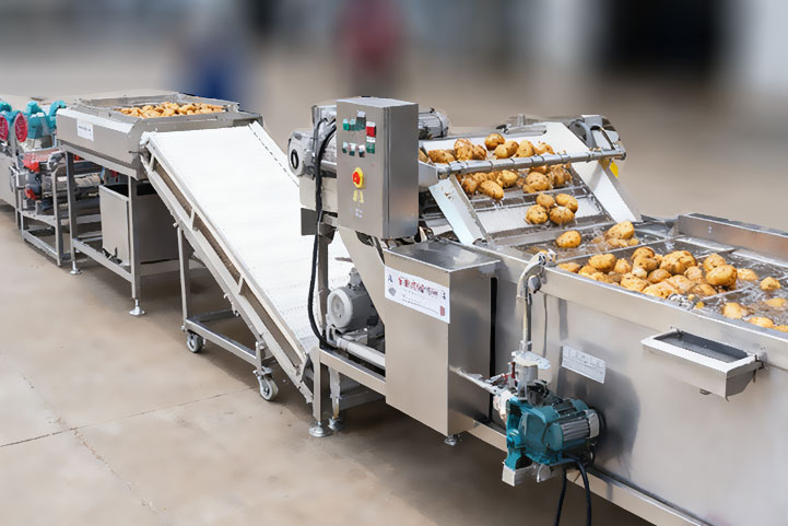 Potato washing line delivering industrial-scale washing, drying & grading of potatoes for uniform quality, defect reduction & consistent grades automatic.
